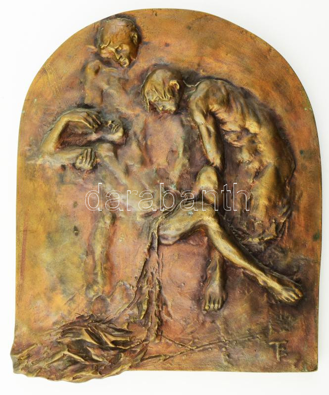 Eskulits Tamás (1947- ): Levétel a keresztről. Jelzett, bronz, 33,5x31...
