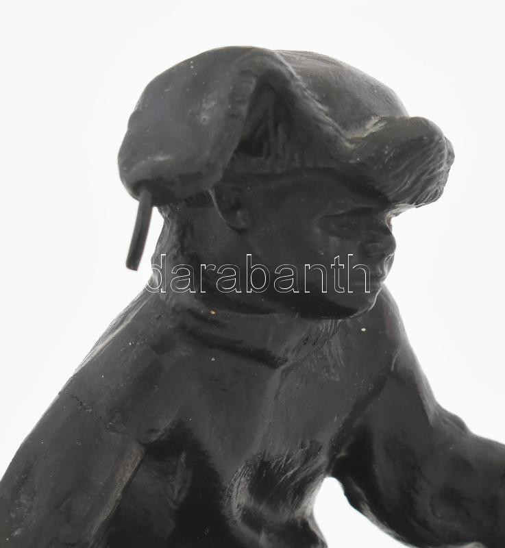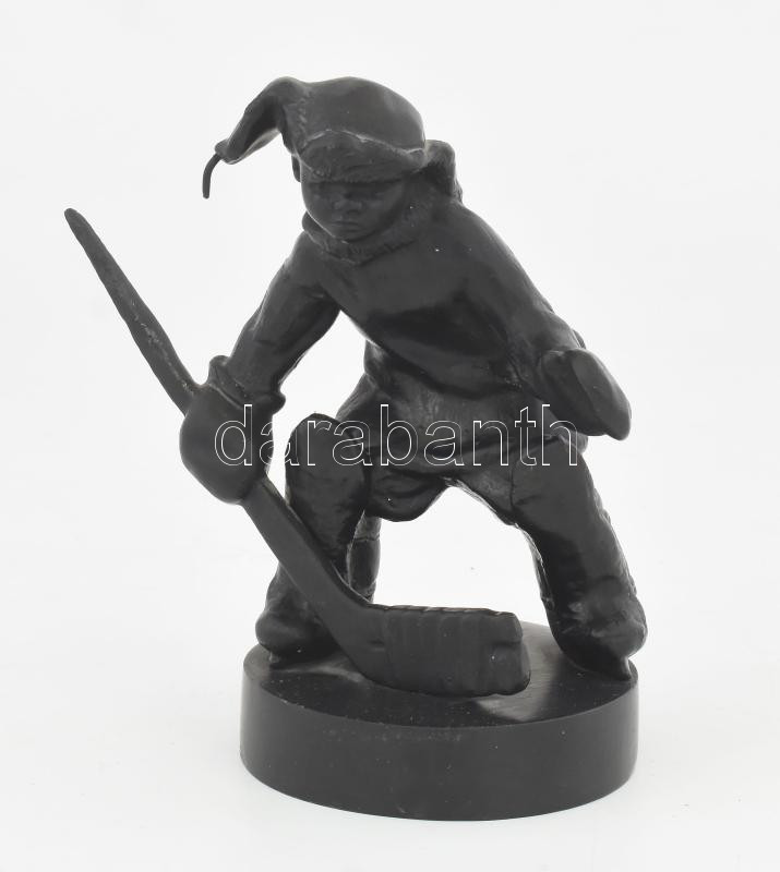 Hoki kapus kisfiú. Kasli, orosz. Öntöttvas szobor 18 cm Jelzett