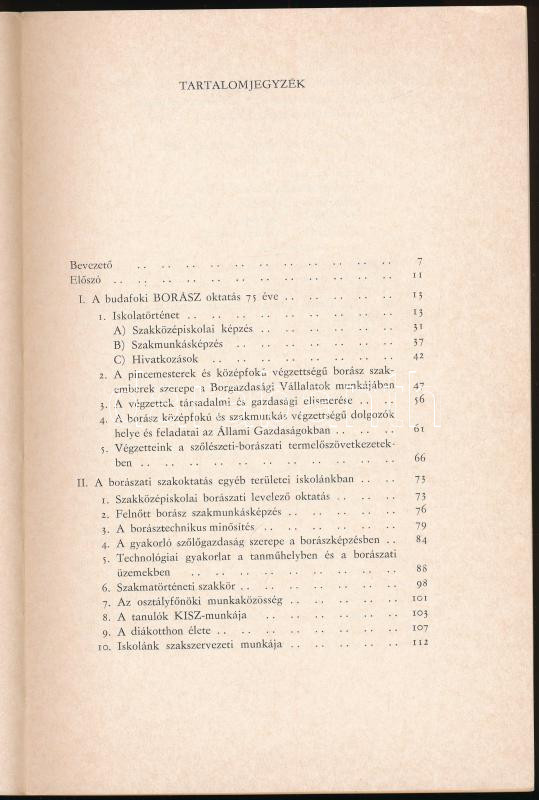 Description: Budafoki borászati szakember-képzés. Soós István Élelmiszeripari Szakközépiskola és Szakmunkásképző Intézet jubileumi évkönyve 1901-1976. (Bp., 1976), Ságvári Endre Nyomdaipari Szakmunkásképző Intézet. Kiadói papírkötés, a könyvtesttől elváló borítóval. Megjelent 1000 példányban.