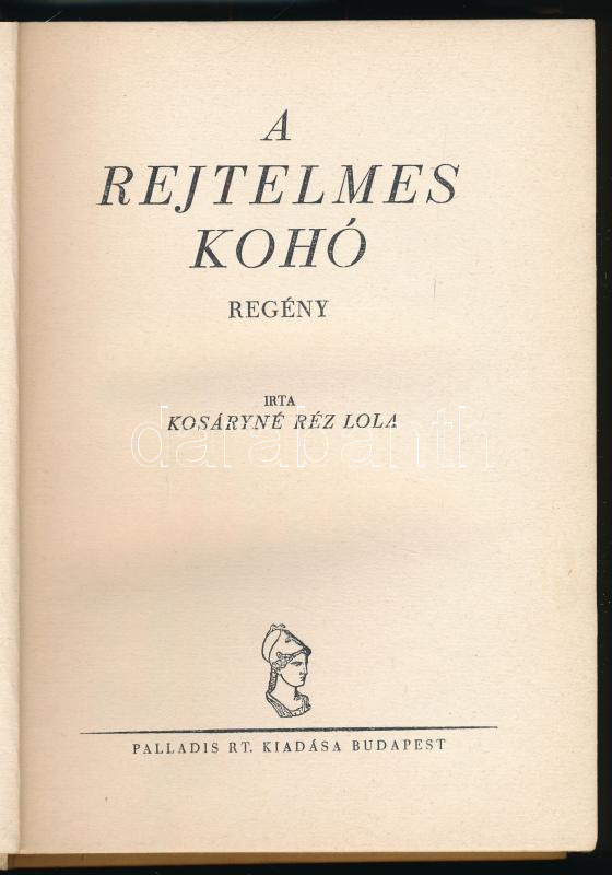 Kosáryné Réz Lola: A rejtelmes kohó. Bp., é.n., Palladis, 195+(1) p. Kiadói egészvászon-kötés, kissé koszos borítóval.