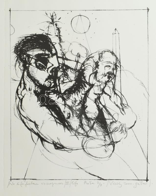Véssey Gábor (1948-): No life (...), 2000. Litográfia, papír, jelzett,...