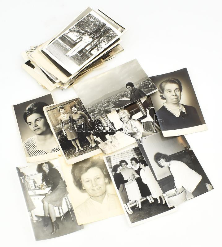 62 db hölgyeket ábrázoló fotó, vegyes állapotban, 14x9 cm körül