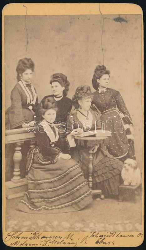 cca 1870 Hoffer Klára kutyájával és barátnőivel, keményhátú fotó Sache...