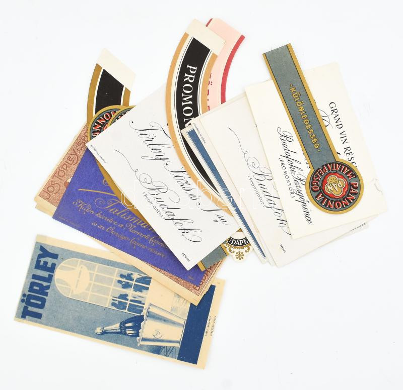 cca 1930 Törley pezsgő 16 db italcímke, számolócédula