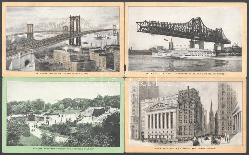 Description: cca 1905 19 db Singer varrógép reklámlap, egyik oldalán New York City látványosságaival illusztrált, másik oldalán leírásokkal és Singer reklám szövegekkel; Kézdi-Kovács László (1864-1942) festőművész, műkritikus hagyatékából; néhány kevés darabon apró lapszéli sérülésekkel
