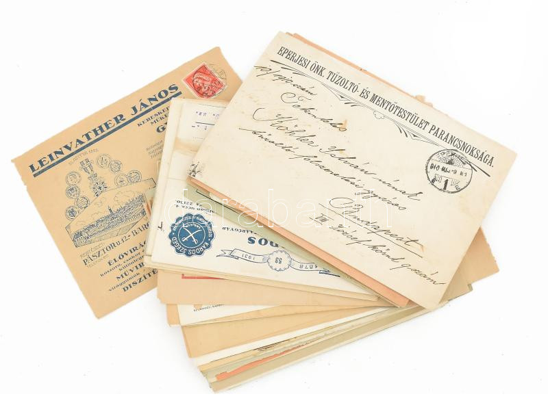 cca 1910-1940 54 db vegyes fejléces boríték tétel, benne gyógyszerészeti, szőrmeipari és tűzoltósági tematika.