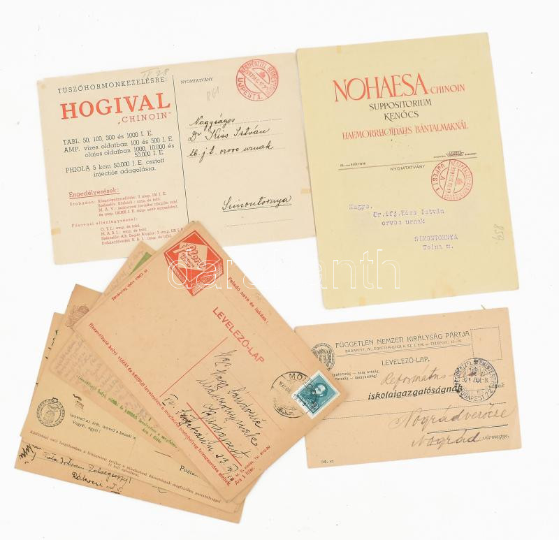 cca 1920-1940 9 db vegyes levezelőlap tétel, benne királysági és gyógy...