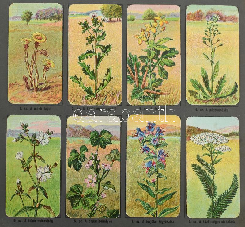 cca 1920-1940 Stühmer Növénytani képek. A-B-C album. "A" Album: 6 levélen 48 kép (25-48.,133-168. sz. képek.) "B" Album: 6 levélen 48 kép (1-24.,49-60.,169-180. sz. képek.) "C" Album: 6 levélen 48 kép ( 73-84., 97-120.,145-156. sz. képek.) Bp., é.n. Zahler Breuer. Teljes gyűjtői albumok. Kiadói haránt-alakú papírkötések, kopott, foltos borítókkal, a gerinceken kis sérülésekkel, 28x32 cm.