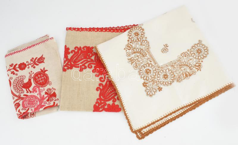 2 darab kézzel hímzett terítő és egy párnahuzat, klf méretben