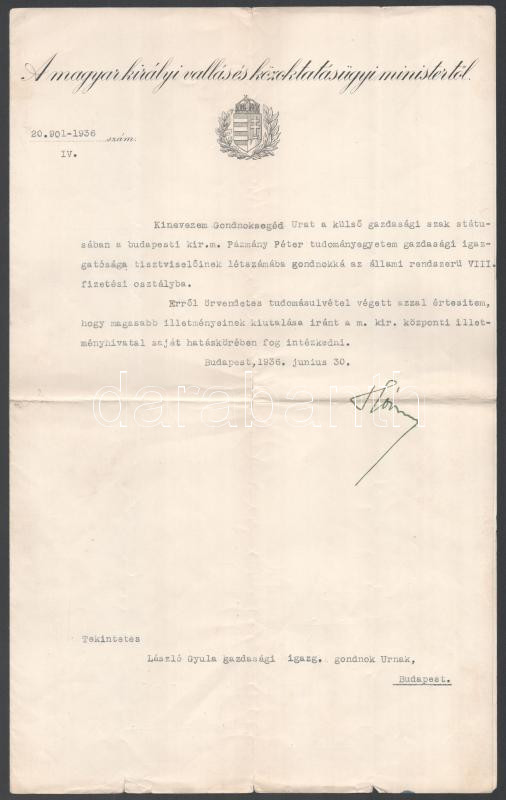 1936 Hóman Bálint (1885-1951) vallás- és közoktatásügyi miniszter auto... https://www.darabanth.com/en/475-Online-auction/475.0/Art-and-other-collectibles/Documents~500021/1936-Homan-Balint-1885-1951-vallas-es-kozoktatasugyi-miniszter-autograf-alairasa-egy-k~II3180521