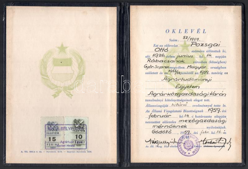 https://www.darabanth.com/en/475-Online-auction/475.0/Art-and-other-collectibles/Documents~500021/1953-1956-Mezogazdasagi-mernoki-oklevel-es-leckekonyv~II3223532