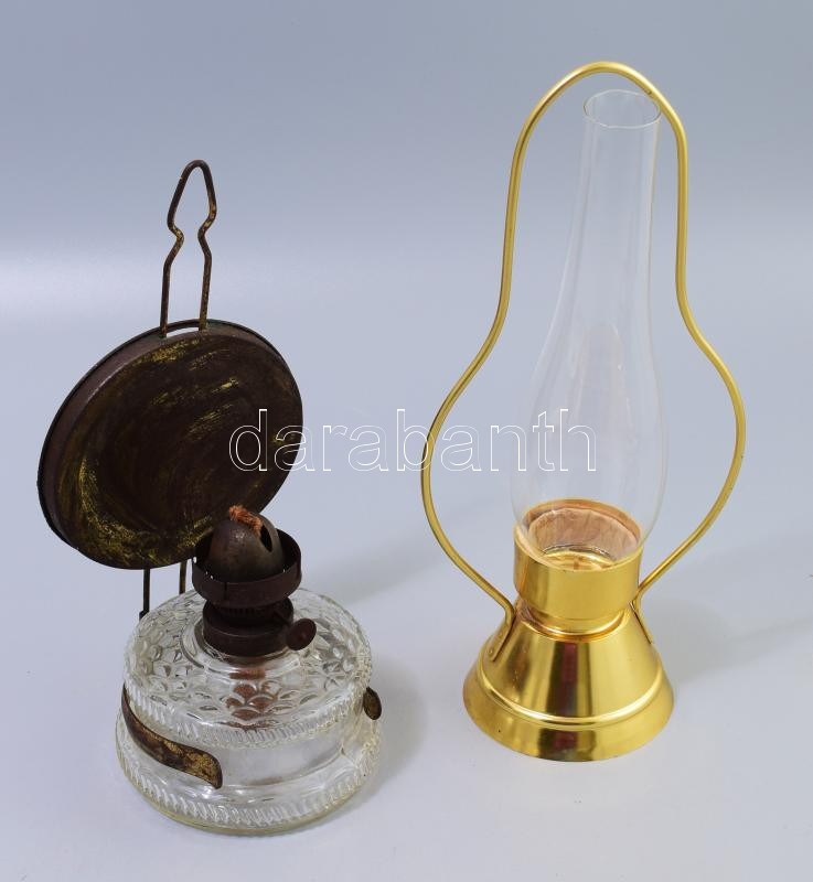 2 darab petróleumlámpa test, búrákkal, m: 30 cm alatt