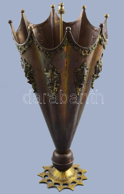 Bronz esernyőtartó, ördögmaszkos mintákkal, fogantyúja hiányzik, m: 52...
