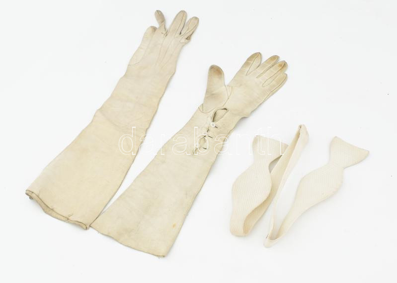 Női glaszé kesztyű, h: 41 cm + frakk nyakkendő