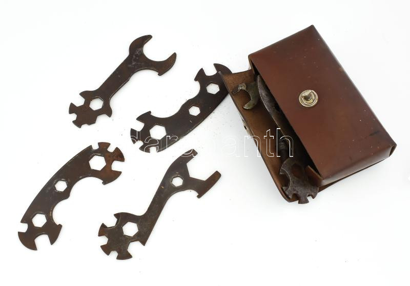Vintage kerékpáros tok, benne 8 db kerékpár kulcs