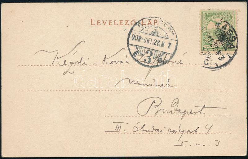 Description: 1902 Kézdi-Kovács László (1864-1942) festőművész, műkritikus autográf sorai a kassai dómot megörökítő, családjának küldött képeslapon: "Ez az ország legszebb temploma! (...)".