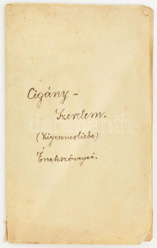 1911 Sopron, Hartner Ferenc: Cigányszerelem (Zigeunerliebe) énekszövegei, kézirat, fűzve, 14 sztl. lev.