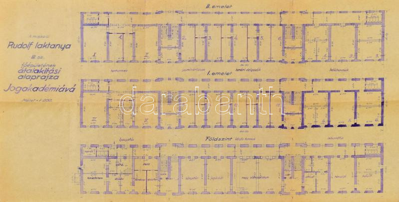 1919 A miskolci Rudolf laktanya III. sz. főépületének átalakítási alaprajza az evangélikus jogakadémia számára, 1:200, 30×56 cm