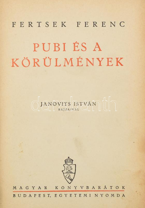 Description: 1938 Vízvári Mariska (1879-1954) színésznő, a Nemzeti Színház örökös tagja, gasztronómiai író ajándékozási sorai, aláírásával. Fertsek Ferenc: Pubi és a körülmények c. könyv elülső táblájának a belsején. Foltos egészvászon-kötés, kissé sérült gerinccel, laza fűzéssel.