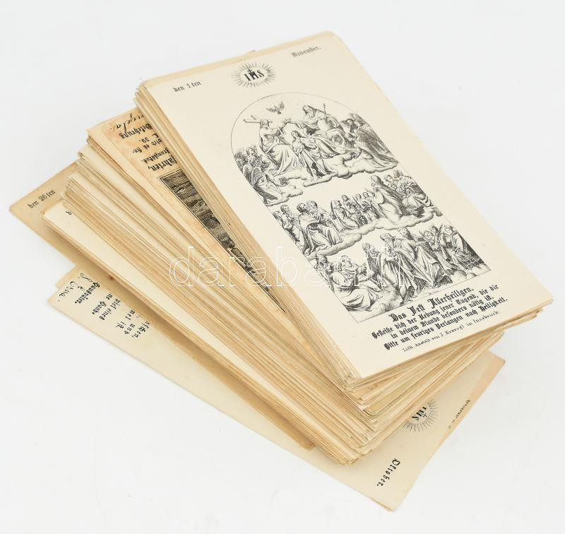 XIX. század közepe "Napok szentjei" szentkép sorozat, nem te... https://www.darabanth.com/en/475-Online-auction/475.0/Art-and-other-collectibles/Historical-documents-manuscripts~500023/XIX-szazad-kozepe-Napok-szentjei-szentkep-sorozat-nem-teljes-vegyesen-kb-200-250-db-Innsb~II3230532