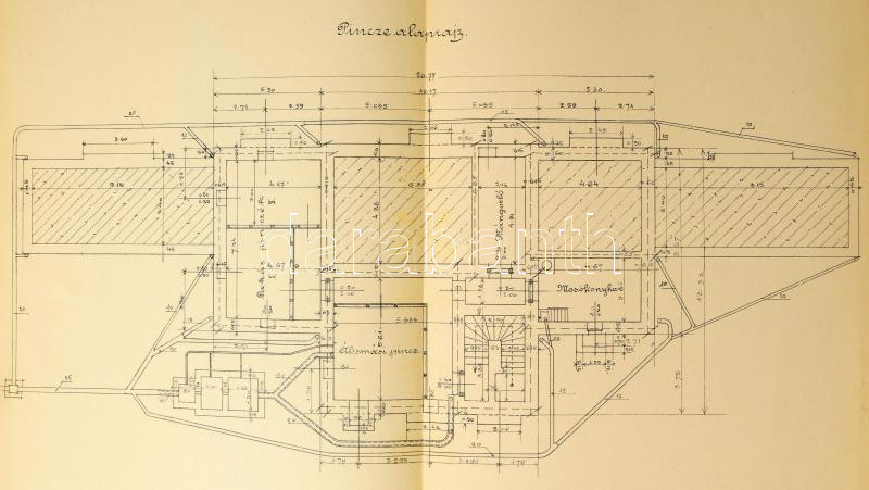 cca 1910 M. Kir. Államvasutak - Felvételi épület Dunaharaszti k. f. állomáson, mérték 1:100, 34×189 cm