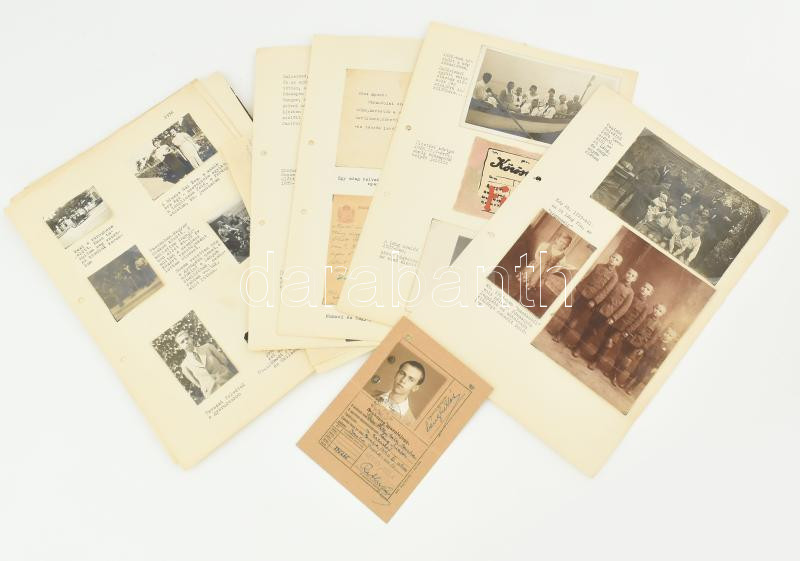 cca 1920-1947 Láng Miklós összeállítása saját, illetve családja, a békéscsabai Láng család történetéről: többségében fotók, néhány levél, igazolvány, névjegykártya, stb. Összesen 12 albumlapon, feliratozva (+ néhány dokumentum külön).