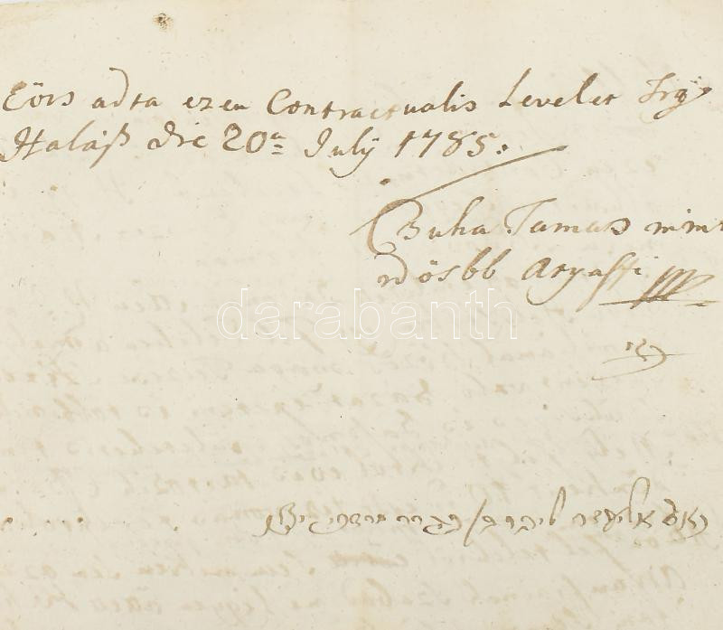 1785 Nagyhalász Eleizer Márton zsidó és Csuha Tamás közötti szerződés,... https://www.darabanth.com/en/475-Online-auction/475.0/Art-and-other-collectibles/Judaica~1000004/1785-Nagyhalasz-Eleizer-Marton-zsido-es-Csuha-Tamas-kozotti-szerzodes-melynek-ertelmeben~II3225610