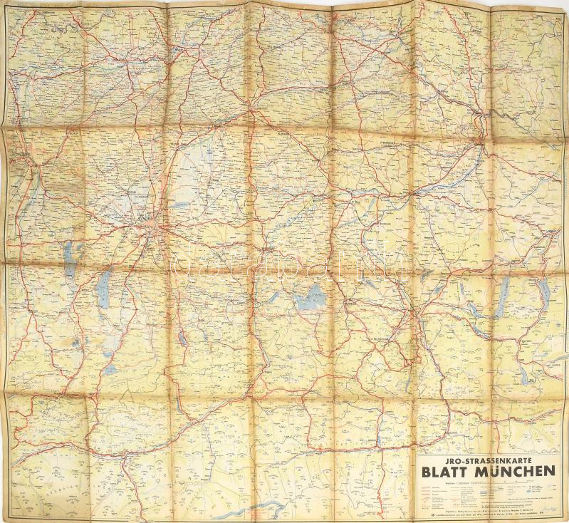 1941 JRO-Strassenkarte, Blatt München / München és környékének autótérképe, 1 : 250.000, München, JRO-Verlag Carl Kremling, kissé viseltes állapotban, ragasztással javított, 94,5x87,5 cm