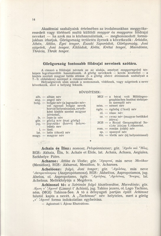 Kiadványunk a Magyar Tudományos Akadémia helyesírási szabályzatának elveit érvényesíti az újgörög földrajzi névanyag átírásában. Kiadványunk egyben útmutatásként szolgál a további nem latin betűs írásmódú államnyelvek fonetikai átírásához. A mellékelt, 1:3.000.000 mértékű Görögország-térképen a dél-európai ország első világháború után megszilárdult határai szerint.
