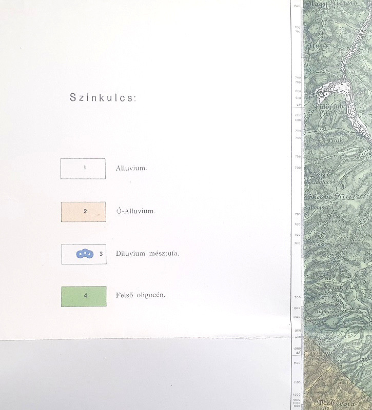 [Térkép] Örökmező és Tuchla térképe. Mértéke: 1:75,000. Geologiailag felvette Posewitz Tivadar az 1898. és 1899. években. (1911) Budapest, 1911. Magyar Királyi Földtani Intézet (Nyomta a wieni cs. és kir. katonai földrajzi intézet). Széles margójú színes térkép, mérete: 420x505 mm egy 670x920 mm méretű térképlapon. A Budapesten és a freibergi bányászati akadémián tanult Posewitz Tivadar (1851-1917) geológus borneói kiküldetése után főként a Tátra környékét térképezte, majd az évszázad végén Máramaros vármegyék egyes területeinek geológiai térképét állította össze. Színes térképünkön a Tisza Nagy-Ága mellett fekvő kárpátaljai Ökörmező és környékének geológiai összetétele, a rétegdőlésekkel és a vasas vízforrásokkal. A színkódolt térképen hegy- és vízrajzi részleteken túl a település- és úthálózat is feltüntetve, a magyar nyelvű jelmagyarázat a térkép jobb és bal oldalán. Jó állapotú térkép, hajtogatva.