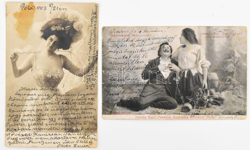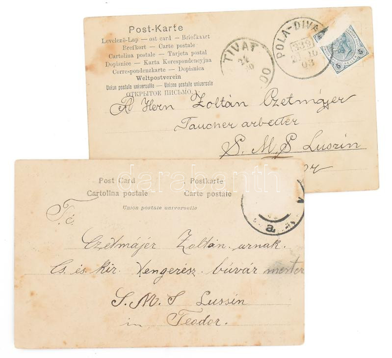 1901-03 Czetmáyer (Czetmájer) Zoltán, az SMS Lussin cs. és kir. tengerész búvárának Polából küldött 2 db képeslap
