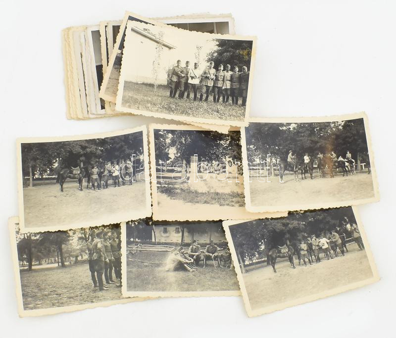 1940 A kecskeméti jászkun huszárok, 26 db részben feliratozott fotó, s...