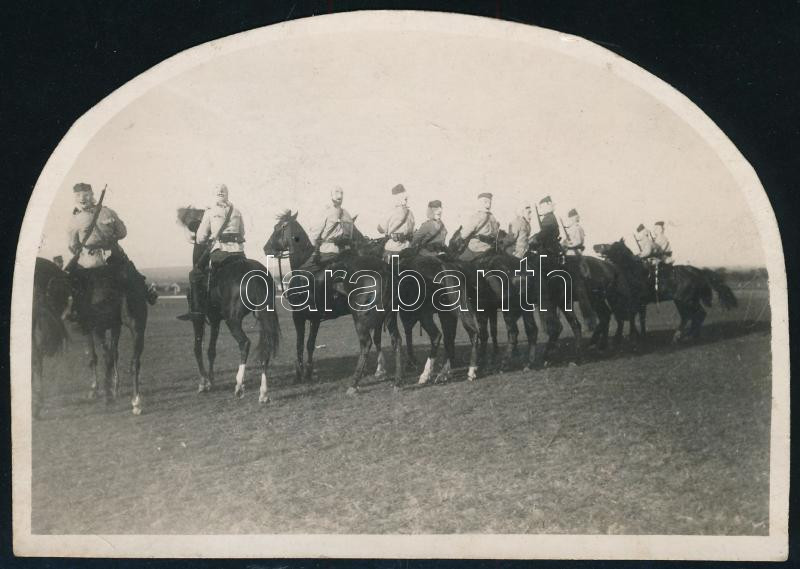 https://www.darabanth.com/en/475-Online-auction/475.0/Art-and-other-collectibles/Military~1000008/cca-1920-Katonak-a-lovon-forditva-feloltozve-fejukon-hatrafele-forditott-festett-arcokat-~II3211212