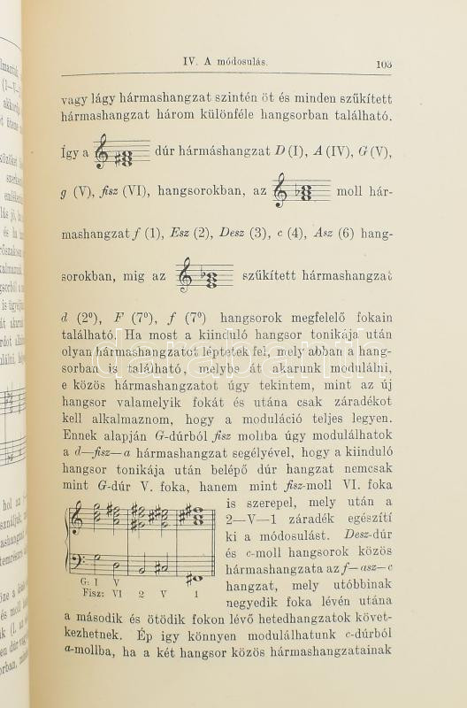 Zenei kolligátum, 2 mű: Siklós Albert: Összhangzattan. (Bp., 1907), [Rozsnyai Károly], VI+(2)+131+(9) p. Hozzákötve: Weiner Leó: A zenei formák vázlatos ismertetése. Bp., 1911, Rozsnyai Károly, 48 p. Aranyozott gerincű, könyvkötői egészvászon-kötésben, az első mű hiányzó címlappal, nagyrészt jó állapotban, néhány kissé sérült, foltos lappal.