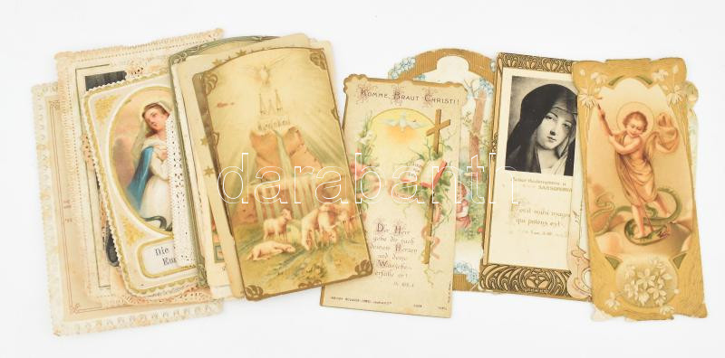 cca 1880-1910 Vegyes szentkép tétel, litók és csipkések, közte sérült,...