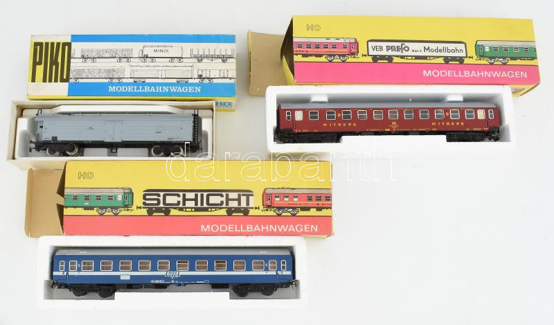 Piko H0 modellvasút 3 vagon, eredeti dobozában, jó állapotban, benne M...