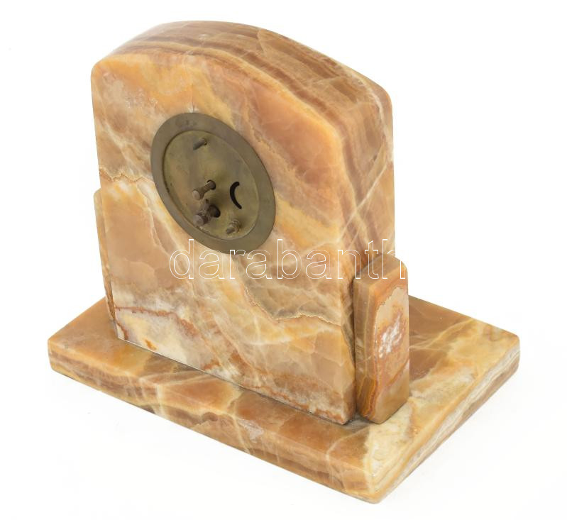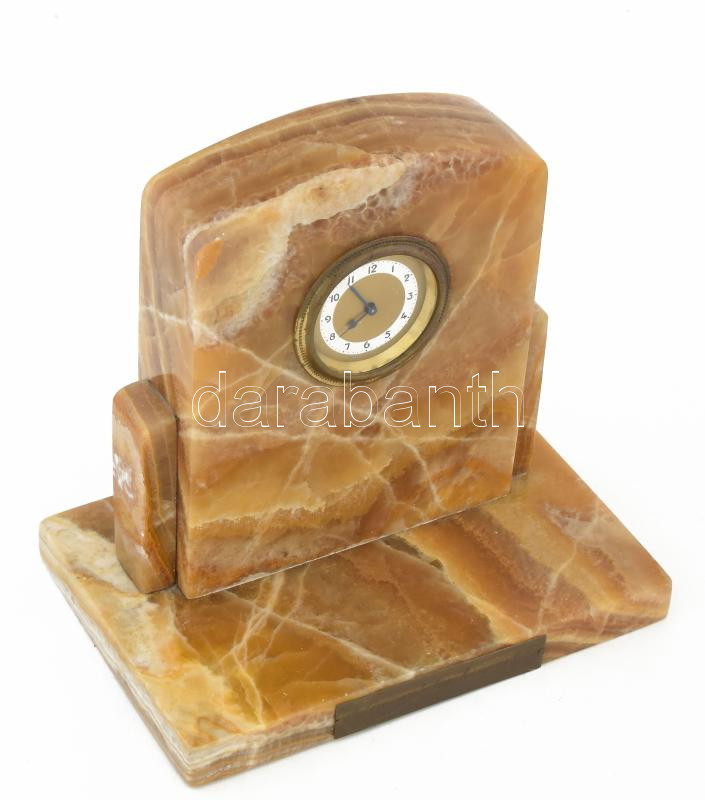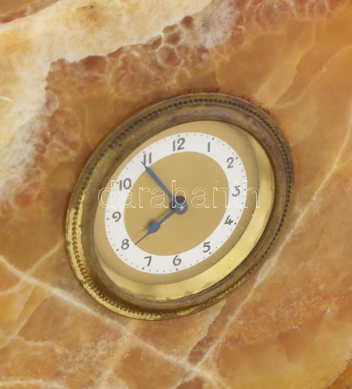 Márvány asztali óra. "1936 Lévai Protestáns Leányegylet" feliratos gravírozott réz táblával. Kézi felhúzós szerkezet nem működik. 21x20 cm