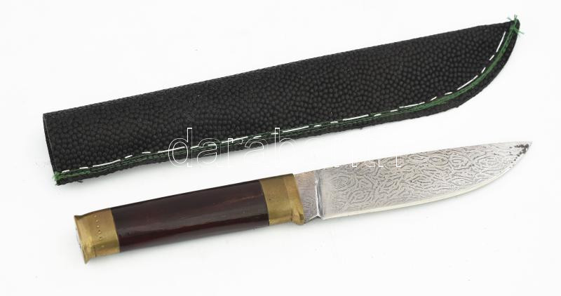 Vadászkés lakkozott fa és réz fogóval szép kidolgozással, jelzett 21 cm