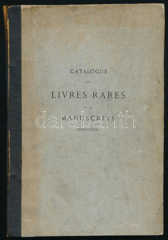Description: [Antoine] Bachelin-Deflorenne: Catalogue de livres rares parmi lesquels on remarque la Bible Mazarine premier livre imprimé par Gutenberg et de manuscrits du IXe au XVIIIe siécle rédigé par M. - -. Paris, 1878, Librairie Bachelin-Deflorenne, 26+2 p.+6 t. Francia nyelven. Kiadói félvászon-kötés, kopott borítóval, sérült gerinccel, kissé foltos lapokkal.