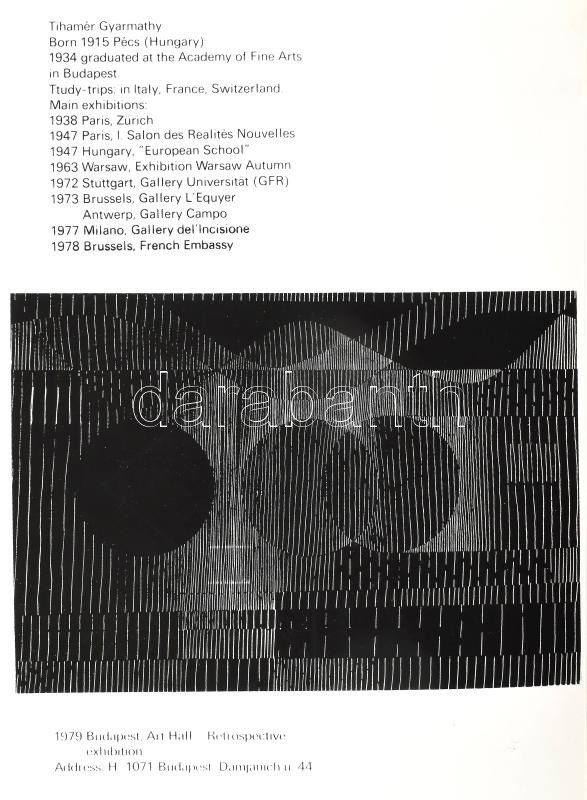 Description: Hungarian Artists. Kiállítási prospektus angol nyelven. Benne Bak Imre, Csiky Tibor, Fajó János, Gulyás Gyula, Gyarmathy Tihamér, Hencze Tamás és Nádler István műveivel. Stockholm International Art Expo, 1982. Kihajtható papírkötésben. Jó állapotú.