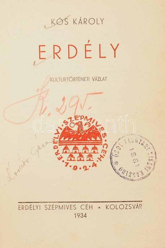 Kós Károly: Erdély. Kulturtörténeti vázlat. Az Erdélyi Szépmíves Céh 1... https://www.darabanth.com/en/475-Online-auction/475.0/Books/Books-Architecture-Art~1000021/Kos-Karoly-Erdely-Kulturtorteneti-vazlat-Az-Erdelyi-Szepmives-Ceh-10-eves-jubileumara~II3152020