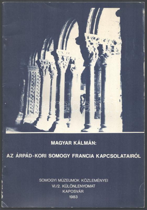 Magyar Kálmán: Az Árpád-kori Somogy francia kapcsolatairól. Kaposvár, ... https://www.darabanth.com/en/475-Online-auction/475.0/Books/Books-Architecture-Art~1000021/Magyar-Kalman-Az-Arpad-kori-Somogy-francia-kapcsolatairol-Kaposvar-1983-Somogyi-Muzeumok-~II3211022