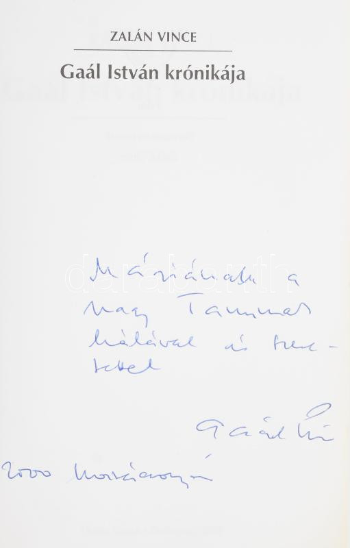 Zalán Vince: Gaál István krónikája. DEDIKÁLT! Bp., 2000, Osiris. Kiadói papírkötés, jó állapotban.