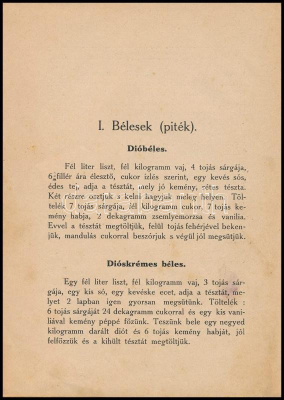 Sütemények és tészták könyve. Gyakorlatilag kipróbált utmutatások. Gazdaasszonyok Könyvtára I. köt. Bp., 1911., Bercsényi Nyomda Rt., 3-125+1 p. Korabeli reklámokkal. Korabeli egészvászon-kötés, kopott borítóval, a címlap és a szennylapok hiányoznak, egy lap kijár, foltos lapokkal, ceruzás aláhúzásokkal.