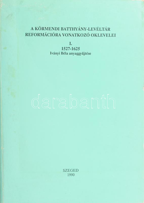 A körmendi Batthyány-levéltár reformációra vonatkozó oklevelei I. 1527-1925. Iványi Béla anyaggyűjtése. Sajtó alá rendezte: Szilasi László. Mályus Elemér előszavával. Szerkesztő, Szilasi László által DEDIKÁLT példány! Kézzel számozott, 006. számú példány! Adattár a XVI-XVIII. századi szellemi mozgalmaink történetéhez 29/1. Szeged, 1990, József Attila Tudományegyetem, XXIII+345 p. Kiadói papírkötés, kissé foltos borítóval.