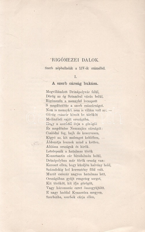 A rigómezei ütközet. Szerb népdal a XIV. századból. Fordította Margalits Ede.