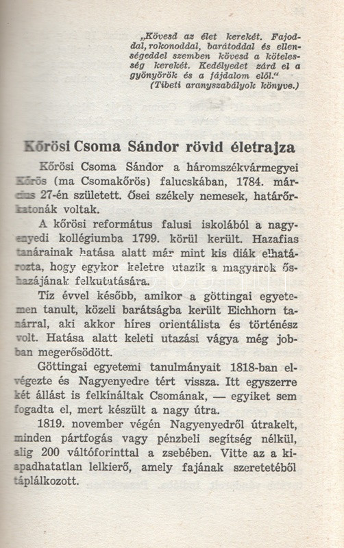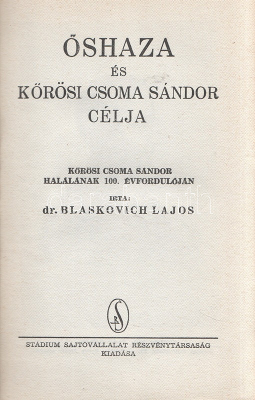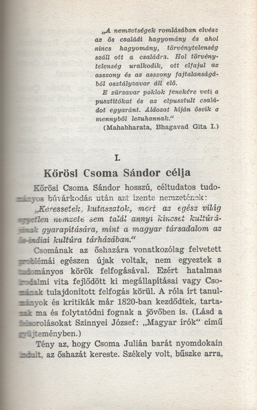 Őshaza és Kőrösi Csoma Sándor célja. Kőrösi Csoma halálának 100. évfordulóján.
