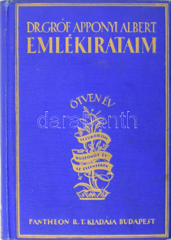 Dr. Gróf Apponyi Albert: Emlékirataim. Ötven év. Ifjúkorom - Huszonöt ... https://www.darabanth.com/en/475-Online-auction/475.0/Books/Books-History~1000019/Dr-Grof-Apponyi-Albert-Emlekirataim-Otven-ev-Ifjukorom-Huszonot-ev-az-ellenzekben-Bp~II3229711