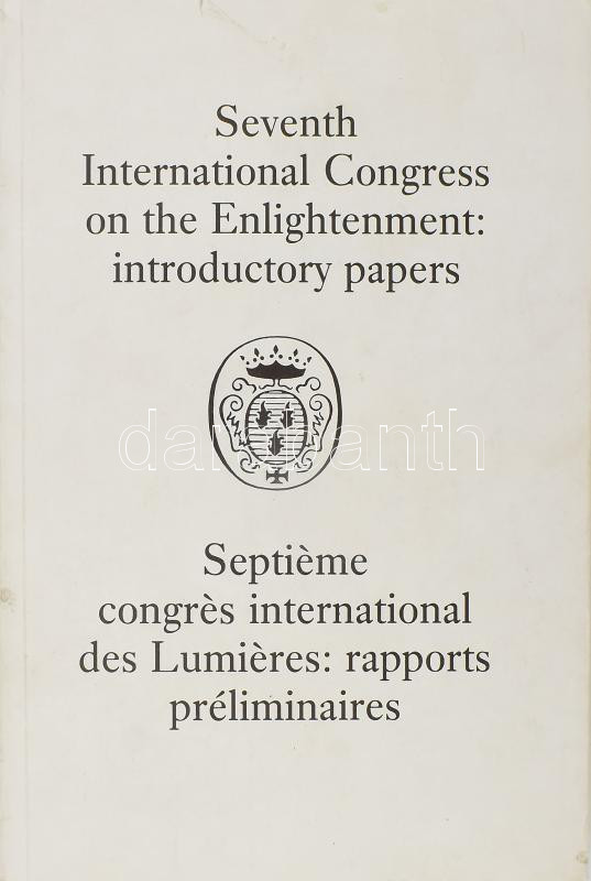 Description: Seventh International Congress on the Enlightenment : introductory papers. Budapest 26 July - 2 August, 1987. Septiéme congrés international des lumieéres: rapports préliminaires. Budapest 26 juillet-2 aout 1987. Oxford, 1987, The Voltaire Foundation. Francia és angol nyelven. Kiadói papírkötés, néhány bejelöléssel.