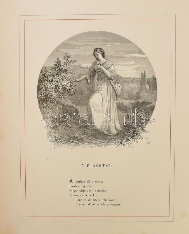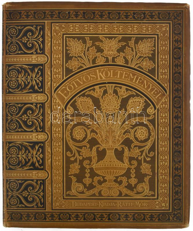 B. Eötvös József költeményei. Székely Bertalan és Keleti Gusztáv rajzaival. Bp., é.n., Ráth Mór (Szász-Altenburg, Pierer-ny.), 73+(1) p. Kiadói dekoratív, aranyozott, festett egészvászon-kötés, a borítón kis sérülésekkel, némi kopással, kissé foltos lapokkal.